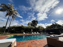 The peaceful sound of wind chimes, chirping birds, and the trickle of the fountain evoke a sense of pure serenity at this classical coastal Californian home located just five minutes from the Carpinteria Bluffs Nature Preserve and the Seal Sanctuary. A blend of Moroccan and Coastal California design creates a warm and inviting atmosphere with the large windows and french doors flooding the space with natural light. The four well appointed bedrooms and bathrooms are spacious and include luxury features such as an in-room fireplace, separate soaking tub and shower, and private access to the tranquil backyard. Outside, guests will enjoy a large heated swimming pool and basking under the California sun and the stunning views of the Santa Ynez Mountains. Explore the coastline while on the 1.5 mile walk to Rincon Point or the 5 min drive to watch surfers at the beach.