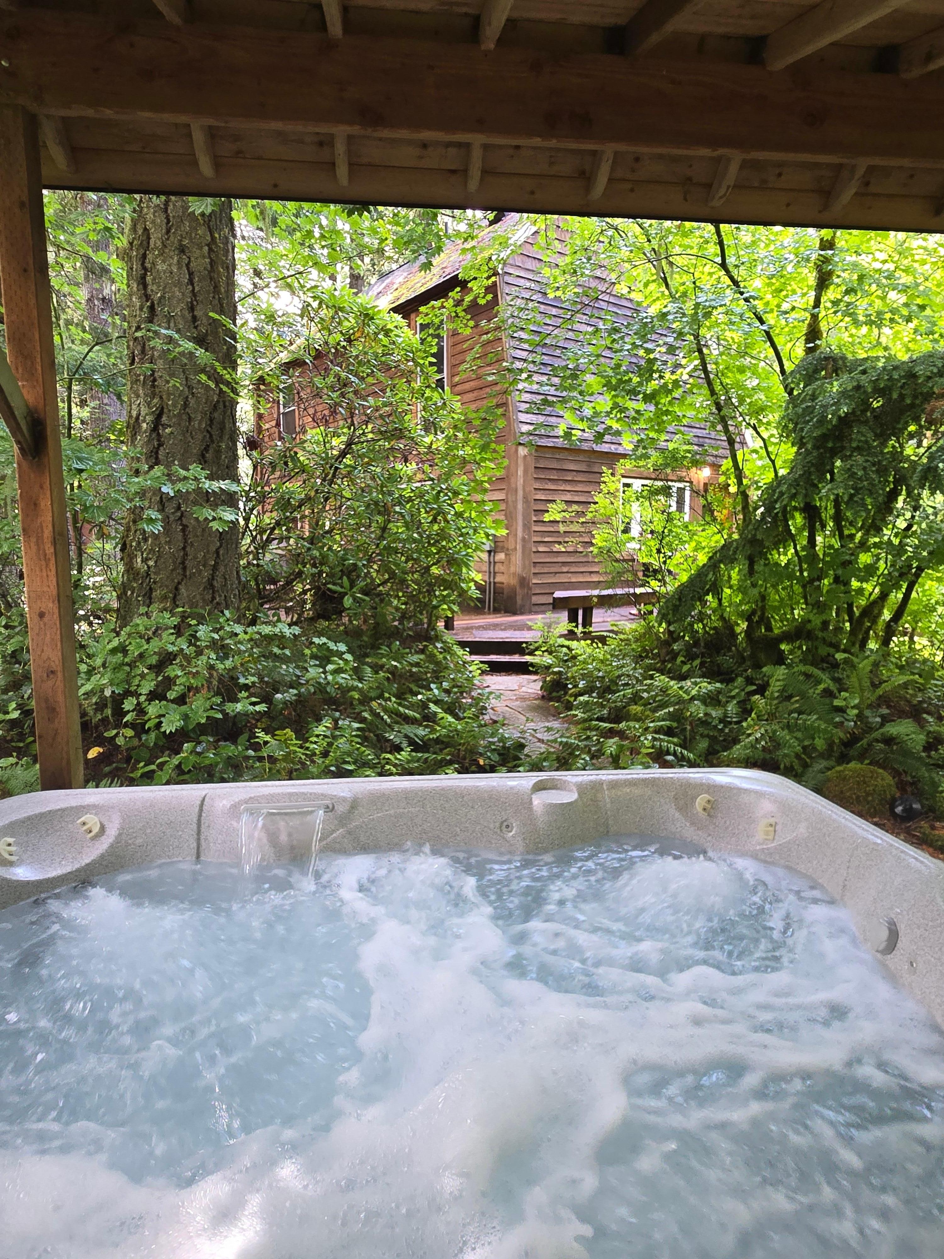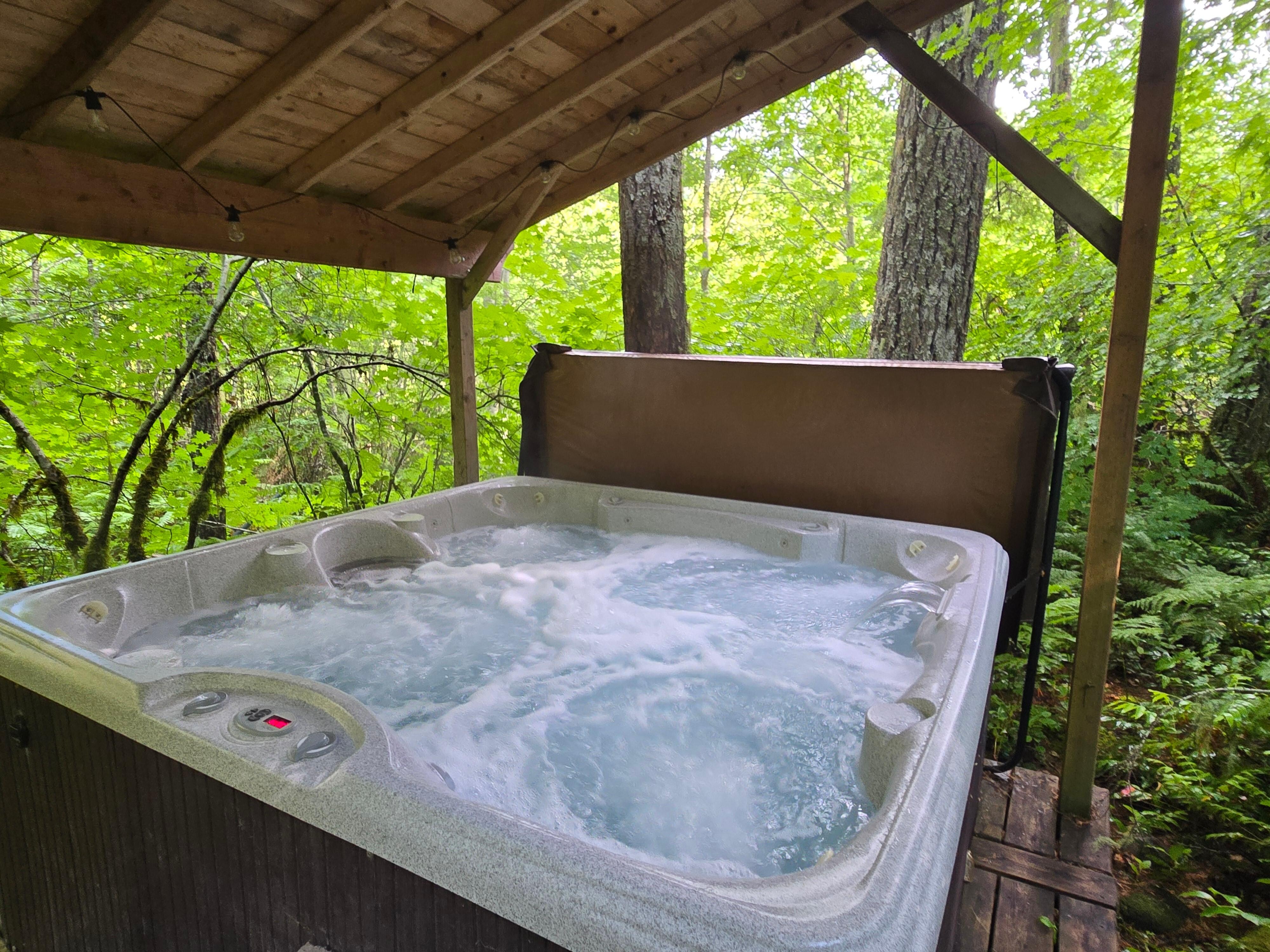 Your dogs are welcome to join you here and they will love taking walks on the mile and a half gated, dead-end road. You will be close to dozens of miles of hiking and biking trails just minutes from the front door. The kids will have lots of fun exploring the forest tree fort in the backyard. End your day relaxing in the private hot tub with a roof to keep the rain and snow off your head.