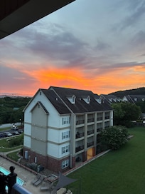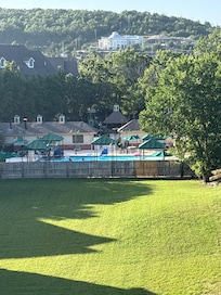 The open living/dining and kitchen area lets everyone gather together for games or breakfast pancakes! It includes all the appliances and we also have a great selection of everything you would need to even cook a Thanksgiving dinner with plenty of serving pieces! Plenty of seating at the dining table and bar stools allows you to all eat together. We have it all from a crock pot to cookie sheets so whether you are making a big pot of chili or warming up a frozen pizza we have you covered. You will love the huge sectional that includes recliners for that break after a day at Silver Dollar City which is less than 10 mins away; large flat screen tv, free WIFI and a fireplace make this a spot to refresh before heading out again! Lots of light comes in from the big deck with 2 seating areas The complex provides charcoal grills by the outdoor pool. We also include a brand new washer and dryer.