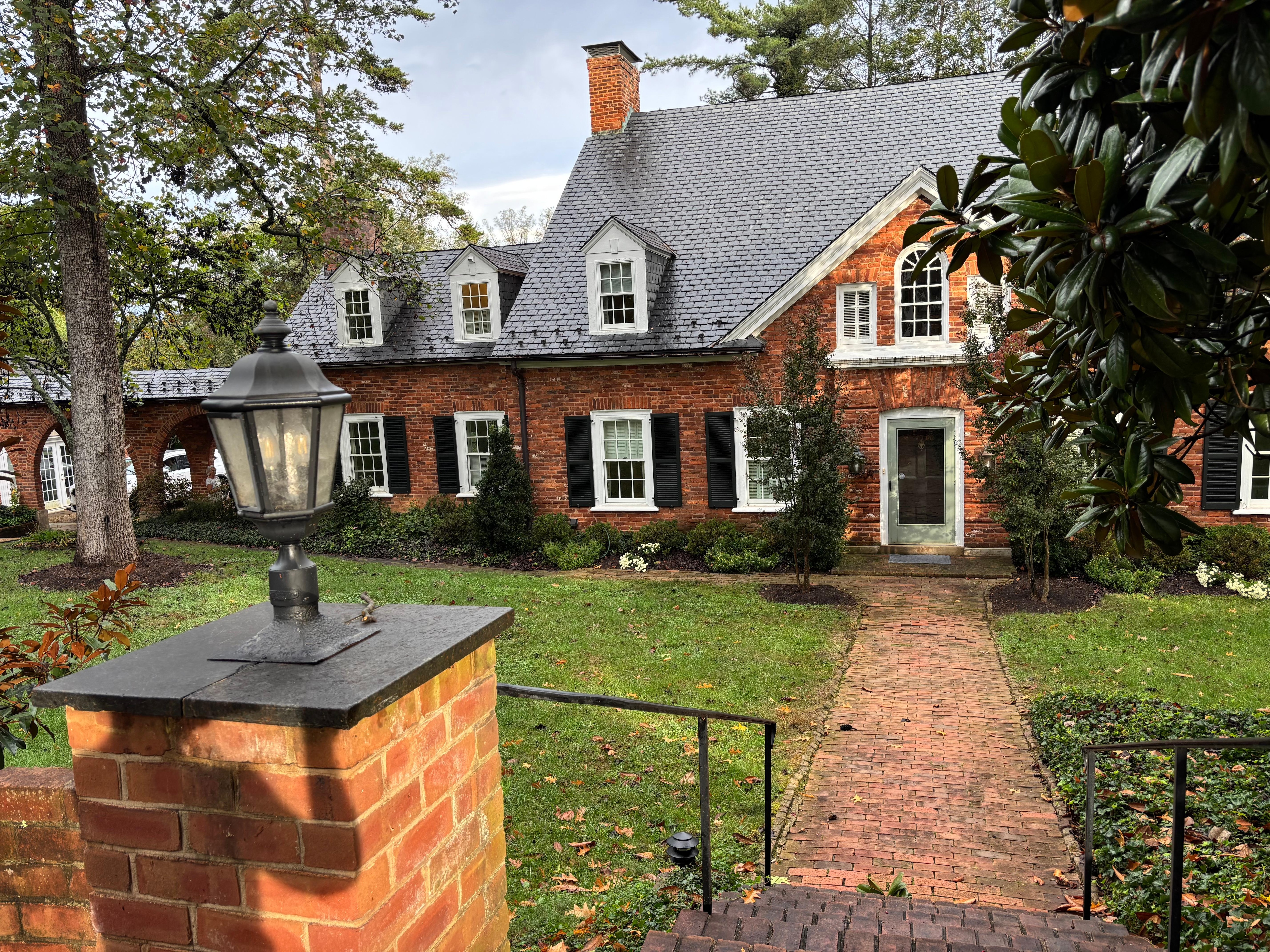 This classic UVA area home is located in an upscale neighborhood close to Grounds. This 5 bedroom, 4.5 bathroom home, complete with Jeffersonian details such as a serpentine wall and Palladian windows, stretches across a large corner lot. Upon entering the house, the living room opens up with access to the dining room and the large brick patio. The kitchen is connected to the dining room with access to one of the parking areas. Walking to the northern side of the home, there is a half bath and a private study. Down the hall, the bedroom on the main level has a king bed and its own en suite bathroom.