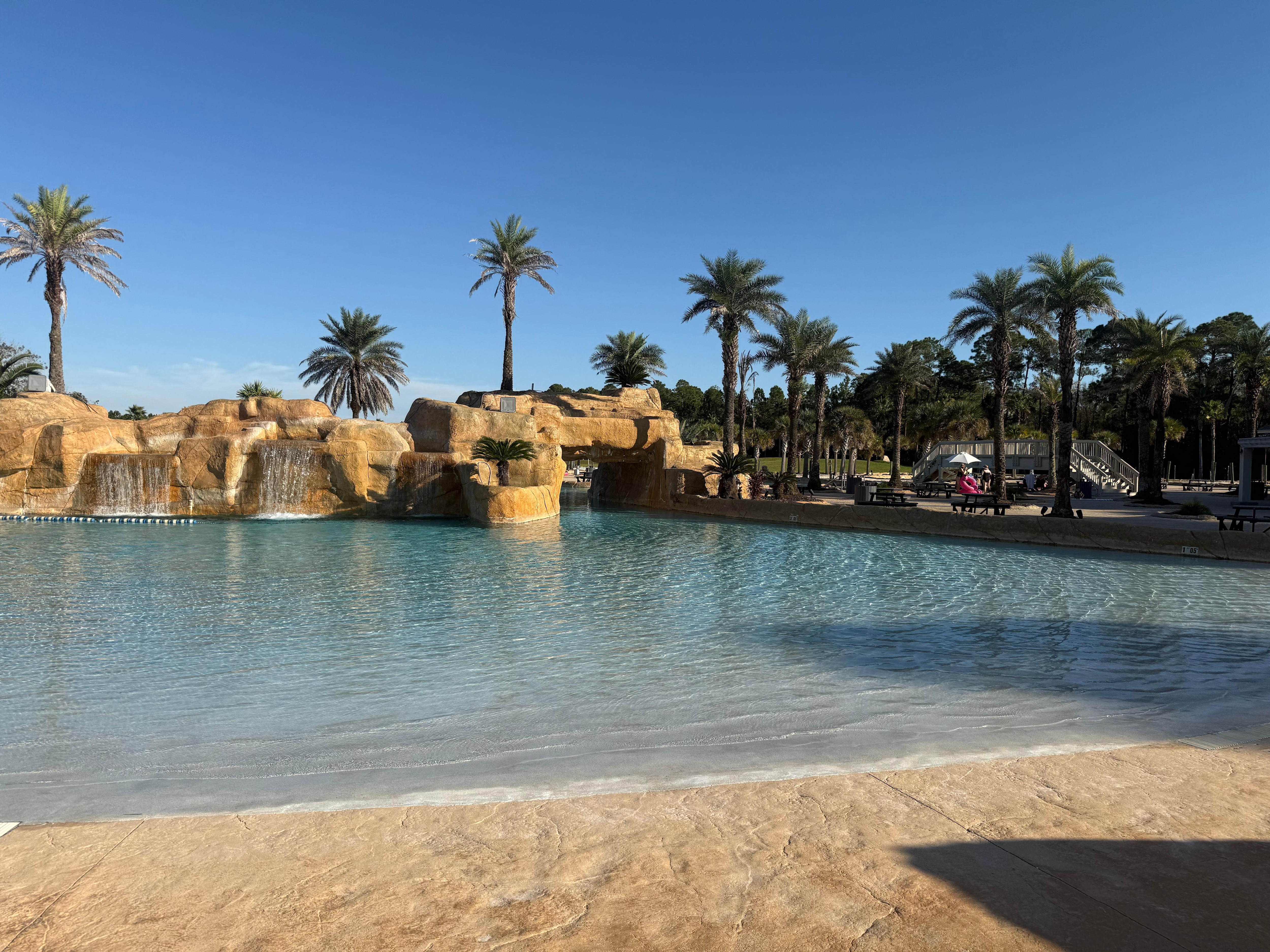 Amenities at the Wharf include 'The Oasis'. 'The Oasis' has a zero-entry wave pool and a lazy river. You can relax poolside or enjoy napping in one of the many hammocks. For those who feel the need to be active, there are beach volleyball courts. There is also a poolside snack bar and restrooms for your convenience.