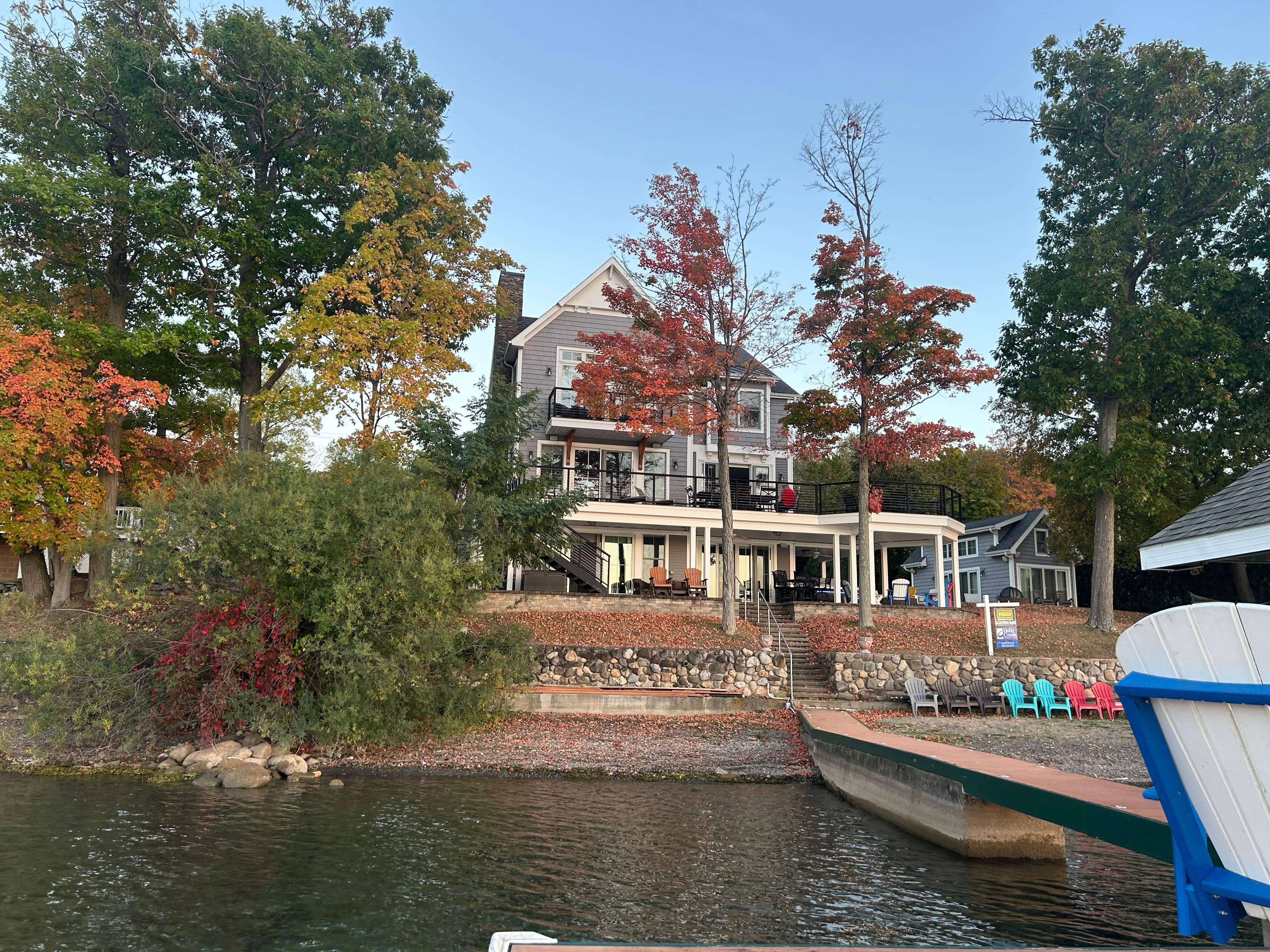 ALL NEW For Fall, 2025 - Hot Tub! See pictures. Premium spacious waterfront lot where you can enjoy a 138' level beach front and gorgeous lake views and sunsets! Beautiful stone break wall complimented by (2) new permanent lighted docks complete with covered automated boat hoist, auto jet-ski hoists (2) and sun deck. Newly constructed home (early 2015 completion) with nearly 4,500 sq ft of spacious living area. You will love the warmth and beauty of the three fireplaces and hardwood and tile flooring, beautiful custom kitchen, lakeview from almost every room, spacious covered outdoor seating, etc.. Huge outdoor deck and master balcony overlooking the beach and wonderful water views. Just 5 steps to the water front and your own exclusive 138 feet of beach. Great water for your family to enjoy with gradually increasing depth, approximately 6 feet deep at end of dock. Two car garage, row house, boat/jet ski hoists not included in rental, used primarily for storage/owner use. Water trampoline available for additional fee, please inquire. Boats/Seadoos not for rent.