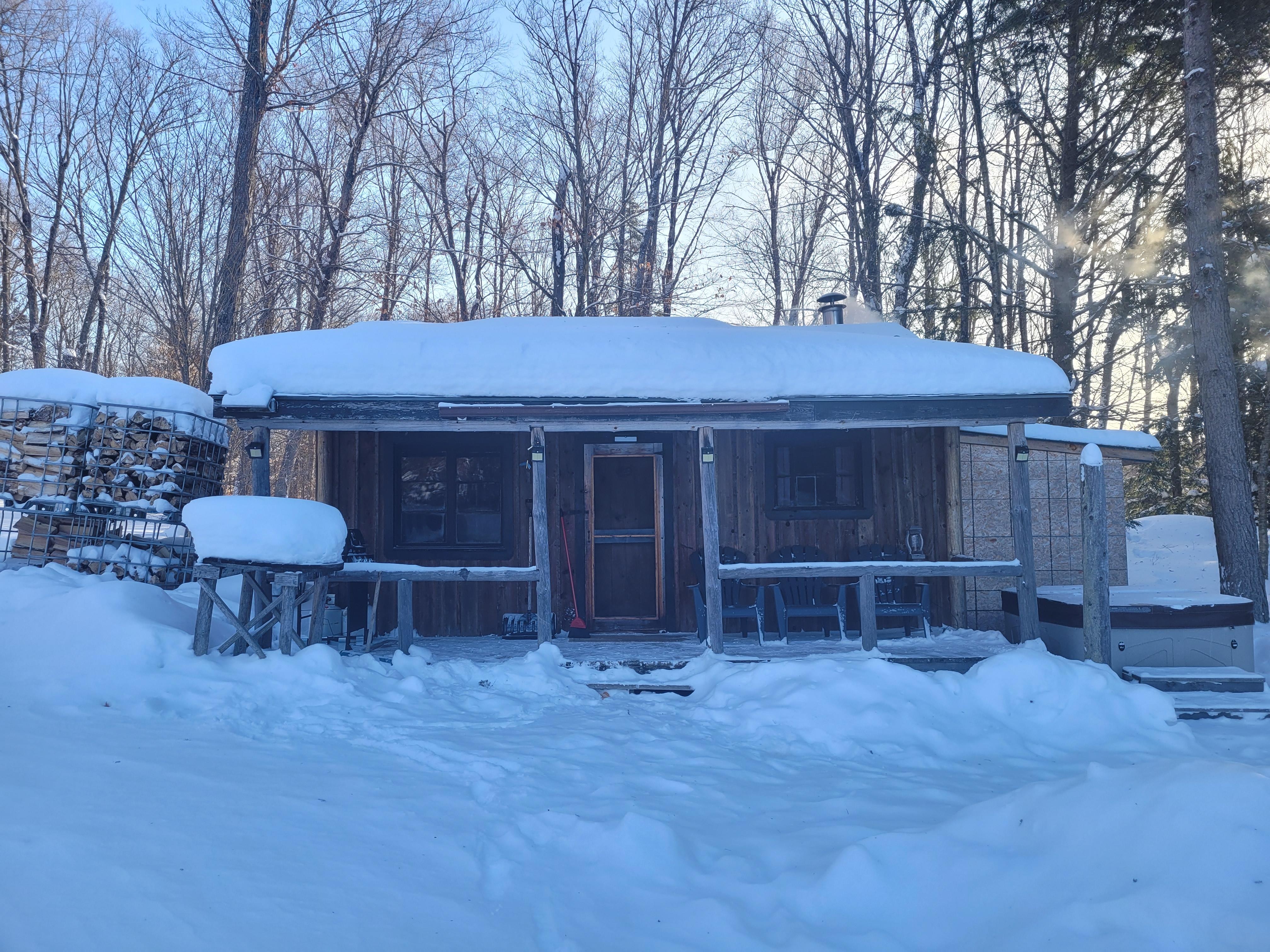 The cabin is warm and cozy with potable water provided and a small sink and bio toilet in the washroom. Hydro has recently been added for small appliance use. There are also upscale and tastefully decorated outdoor washrooms on the property just a short walk away. Outdoor showers at our comfort station just a short 10 mins walk away is also available.