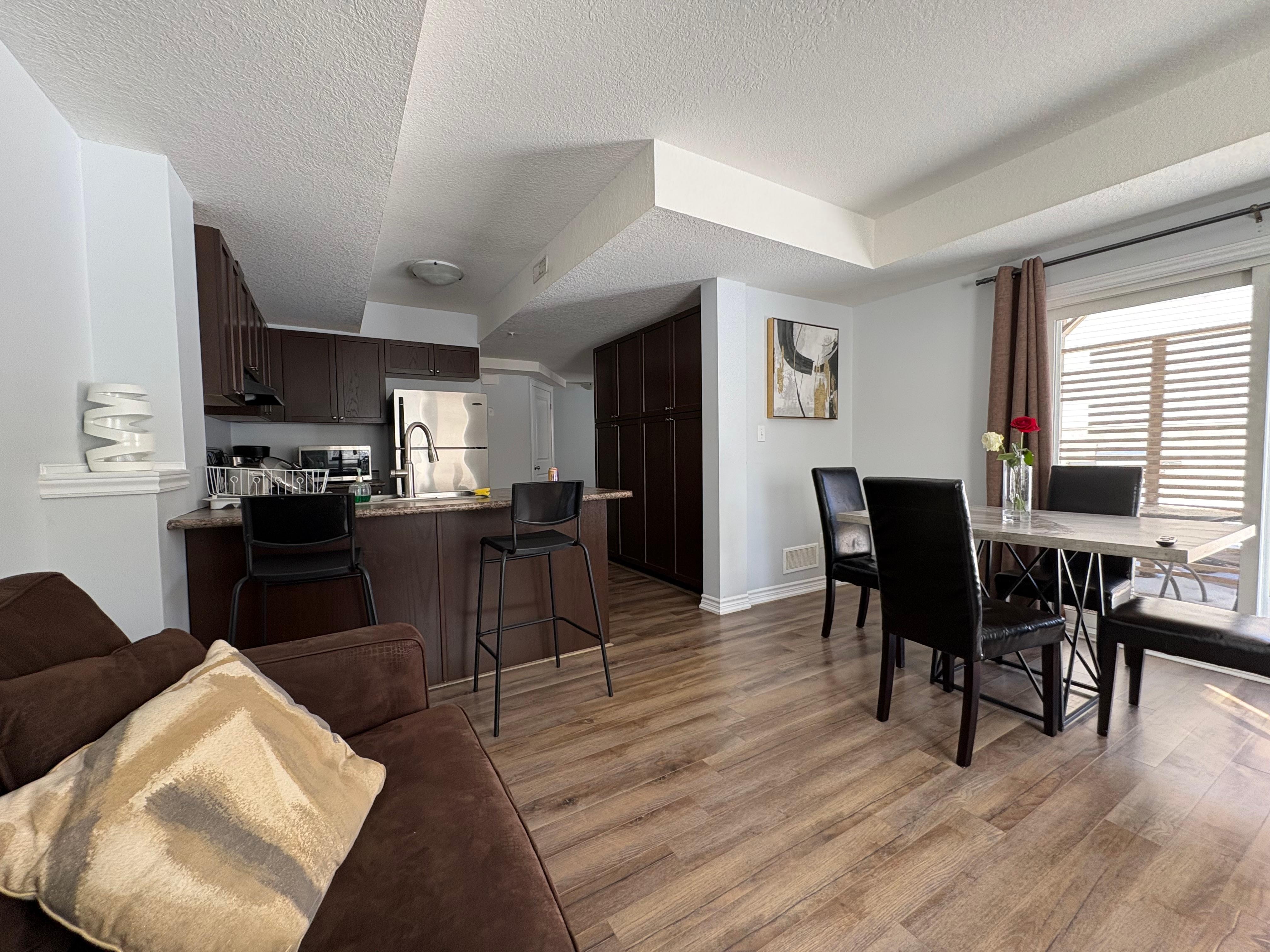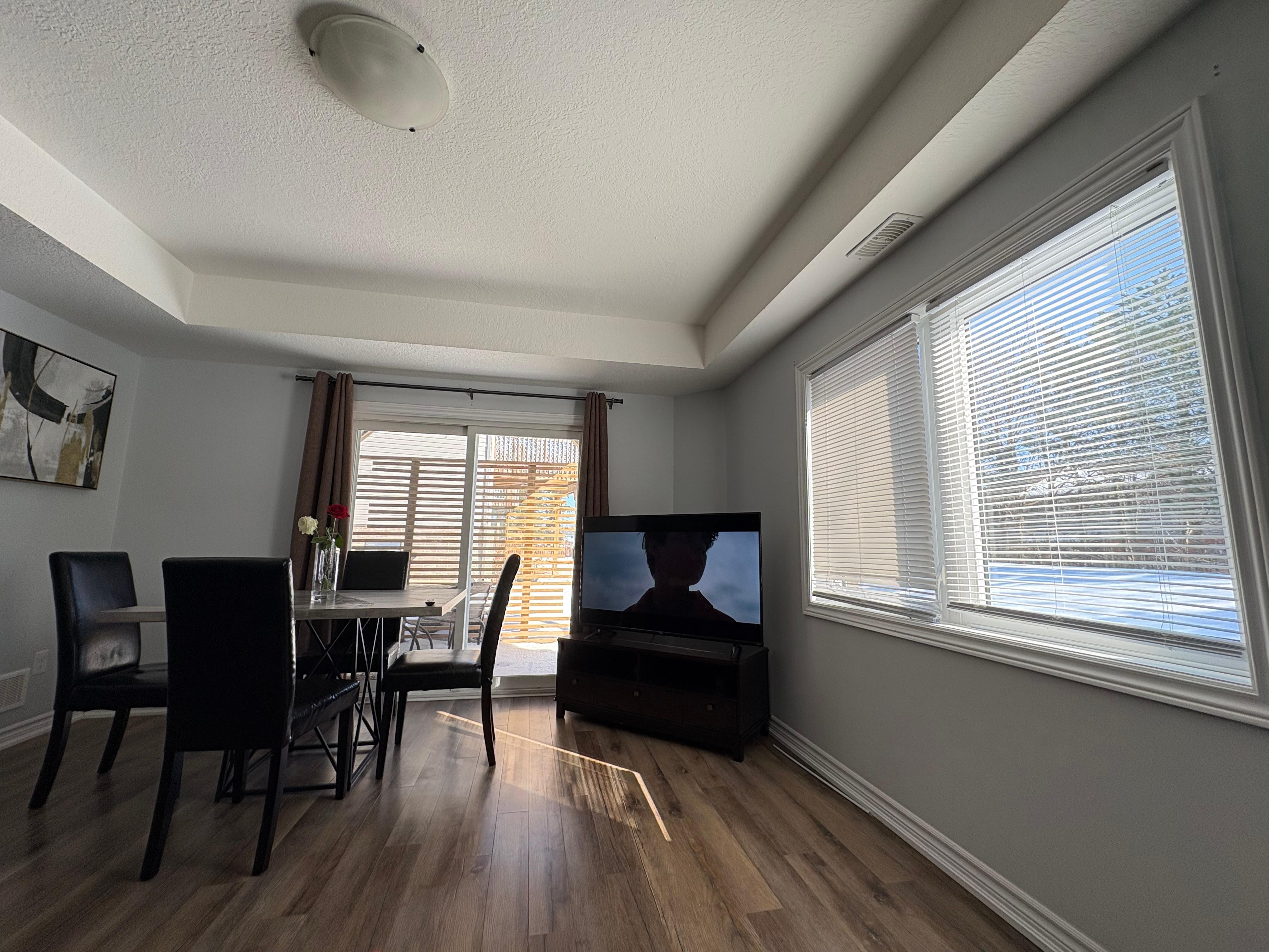 We enjoyed our stay here. The host did a good job and the condo was very clean. The 2 parking spots were a perk. There's plenty of space in kitchen cupboards, which made it easy to store groceries for the week we were there. We loved the modern yet homey interior decorating of this rental unit. The colour scheme is warm, peaceful and inviting. The beds are comfortable. The rooms look nice and the owner made good use of the space. The living room has the dining table on one side of it, as well as 2 kitchen bar stools. So with all the seating combined, it was good for hosting a couple guests. Otherwise there's just a 2-3 seat couch or sofa in the living room. It is located in a quiet cul de sac too, which was a nice surprise. It's also just a few minutes away from the main highway. So it's good for commuting or getting around the city.
