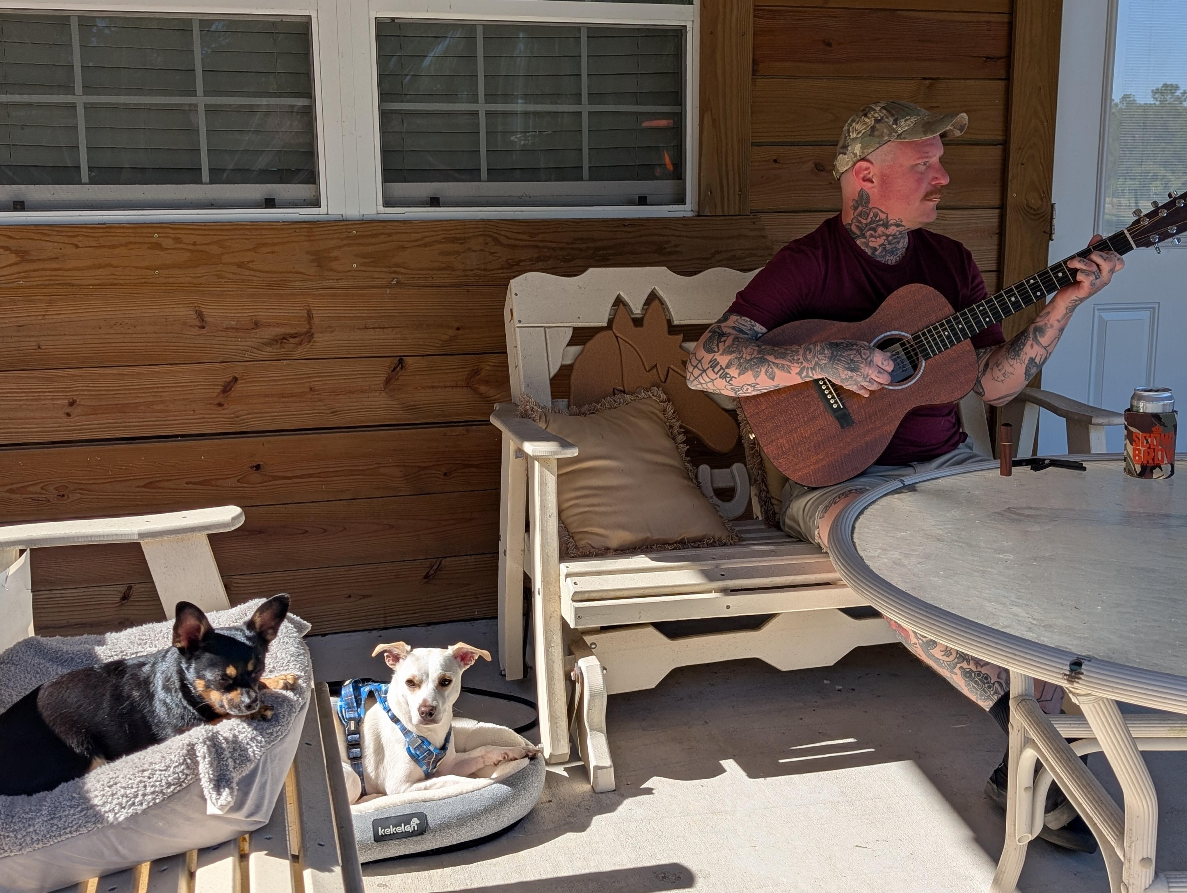 OUTDOOR PERKS: Covered porch w/ seating, wood-burning fire pit, hammock, 4 horse stalls