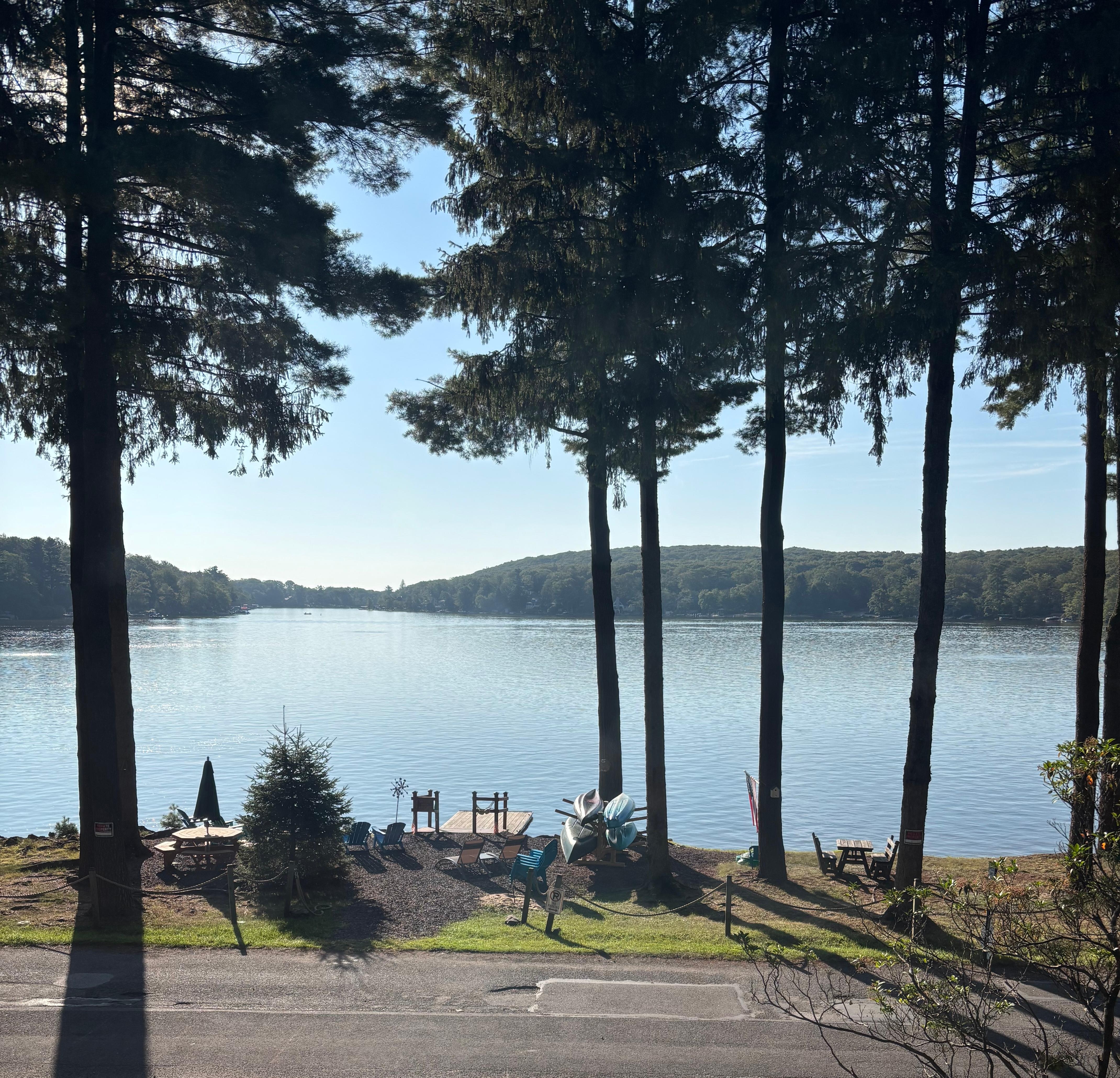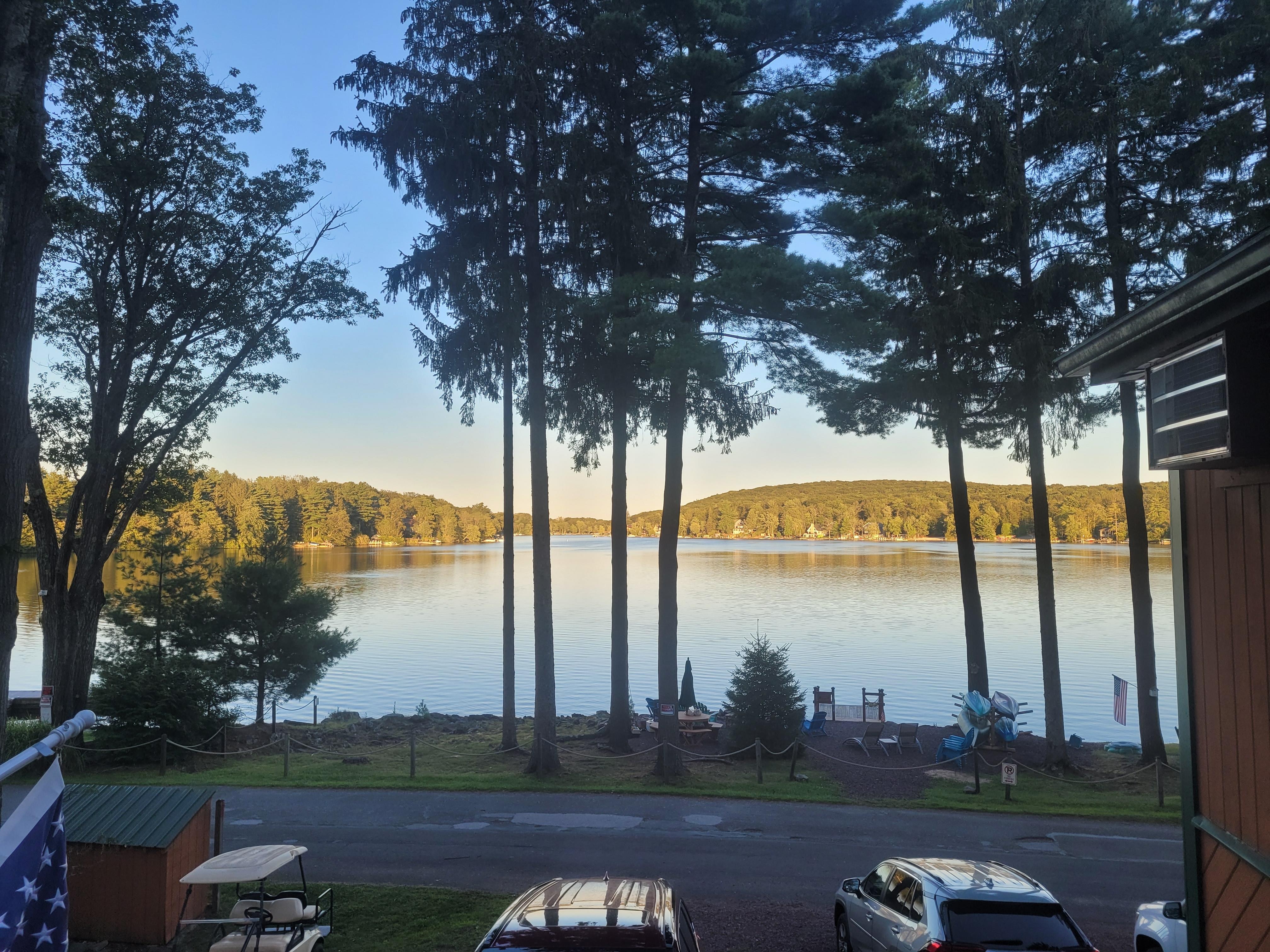 Large Lakefront property with spectacular unobstructed views of Lake Harmony (has been quoted by previous guests as the best on the Lake). Our rustic 4 bedroom, 2.5 Bath home has been updated and is ready for your arrival. Many lovely meals can be prepared and enjoyed on the outdoor deck with access to a family size Weber Gas Grill. Enjoy a fun-filled day with use of 3 kayaks, canoe and paddle board (life vests included) from our lakefront dock. Also there is horseshoes, cornhole and a sweet Little Tikes turtle sandbox. Water skiing & raft riding are available with the amazing Captain Rob of Lake Harmony Watersports. For those wanting more adventure, many hiking and biking trails, white water rafting and tubing are available in nearby Jim Thorpe. For the little ones, Kalahari & Camelback (less than 30 minutes away) are 2 of the best water parks in the Northeast according to USA Today. Golf is also within 10 minutes at the beautiful Jack Frost National Golf Club or Split Rock Resort. Indoor fun continues with DVD's, board games, foosball, Teenage Mutant Ninja Turtle Arcade Game, puzzles, books and Cable TV. There's six restaurants within 10 minutes and many more within 20 minutes. After a day of fun, spend time relaxing with family and friends around the lakefront fire pit while enjoying the beautiful sunset. Access to property is by private road in front of house.