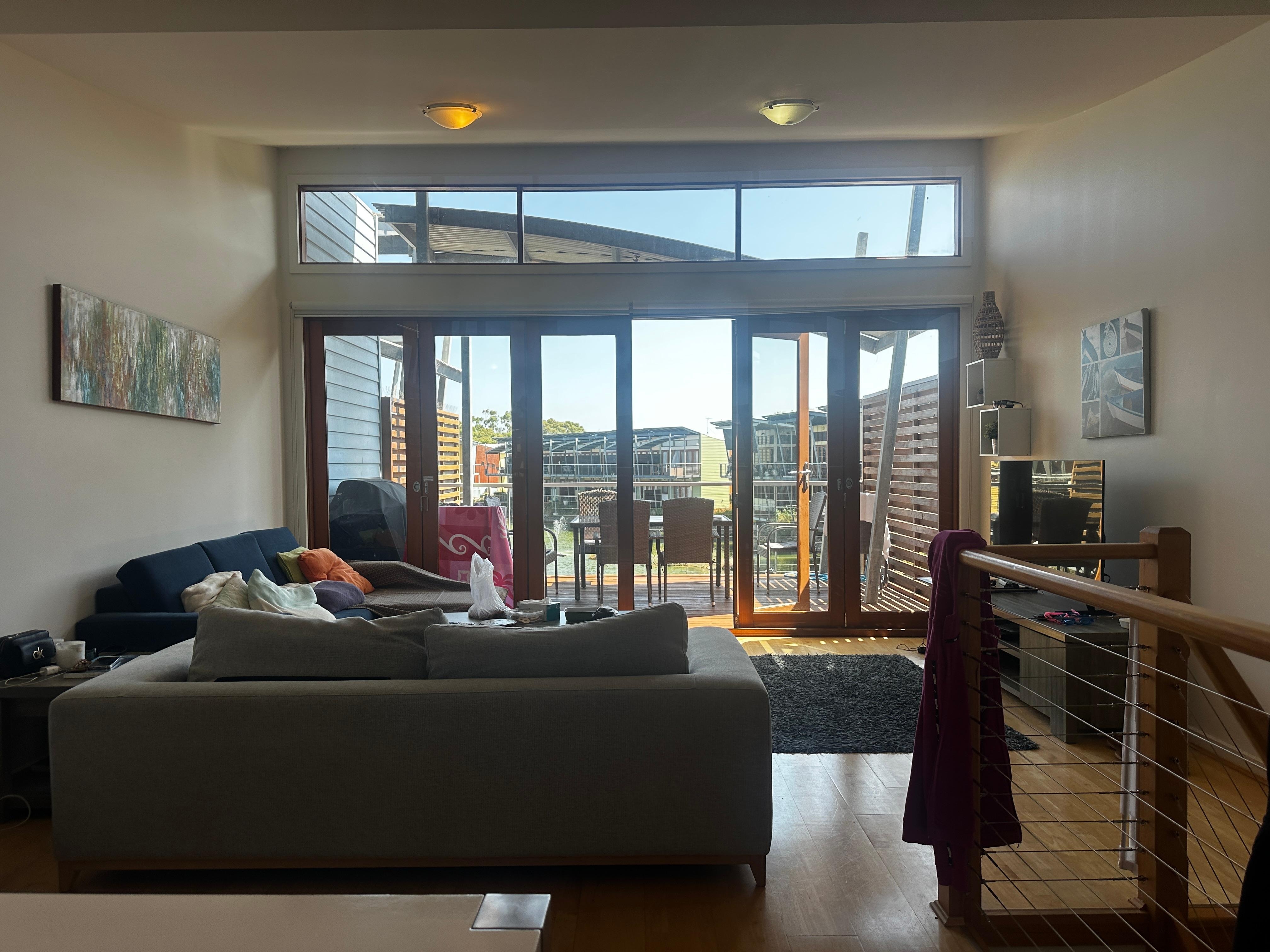 Relax in the comfort of open plan living, kitchen (equipped with stove/oven, fridge and dishwasher) and spacious dining and lounge areas on the upper level. These areas open out through bifold doors to the balcony deck, where you can socialise, barbecue and have a drink or two whilst enjoying the views along the lagoon, which include water fountains and various birdlife. A powder room with toilet, basin and vanity located adjacent to the living areas is handy for your guest use. Also located on this level is a separate laundry area, which includes a washer and dryer for your convenience.