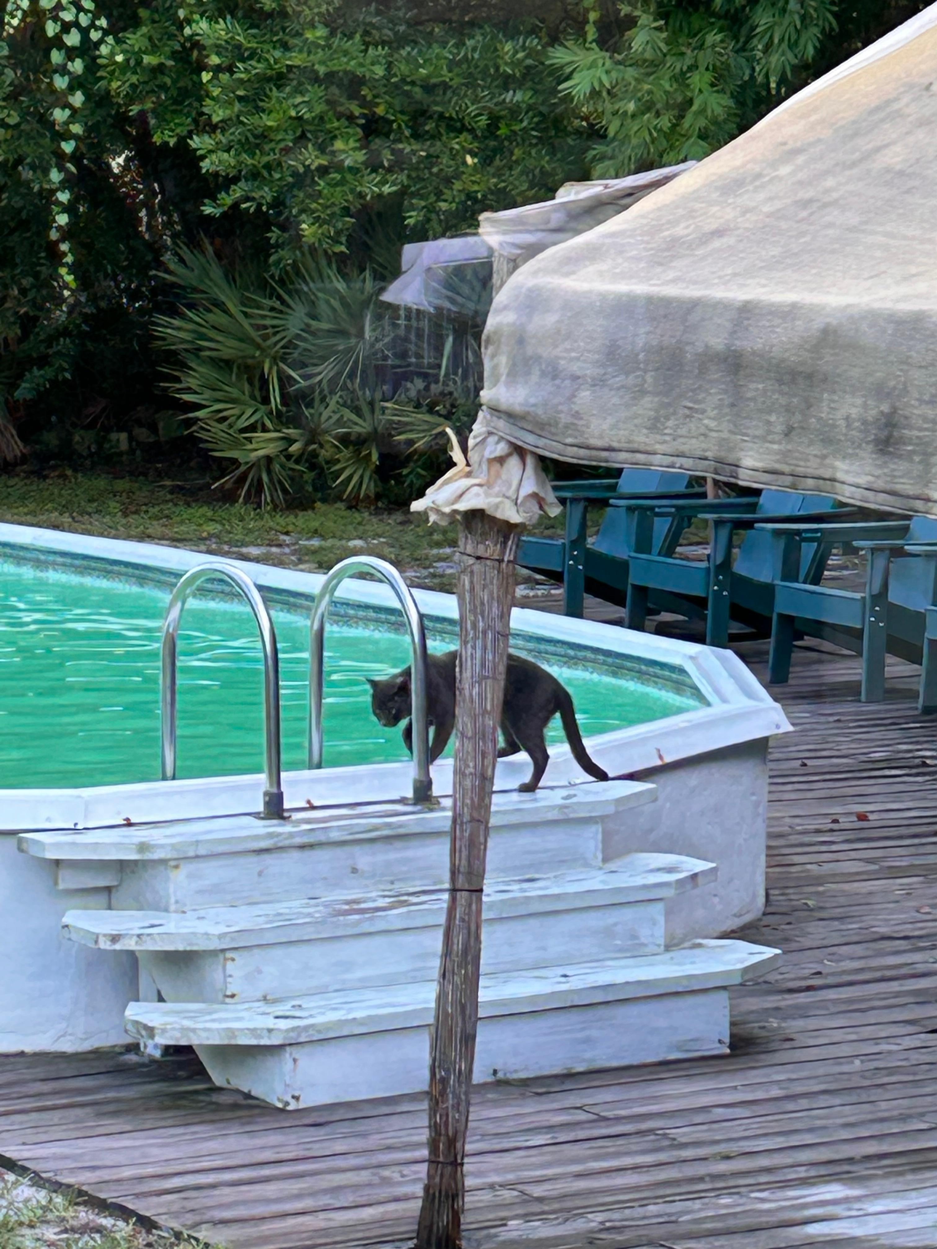 OUTDOOR LIVING: Private yard, covered patio, swimming pool, tropical bar, gas grill, hammock, ample seating, cornhole, pool towels