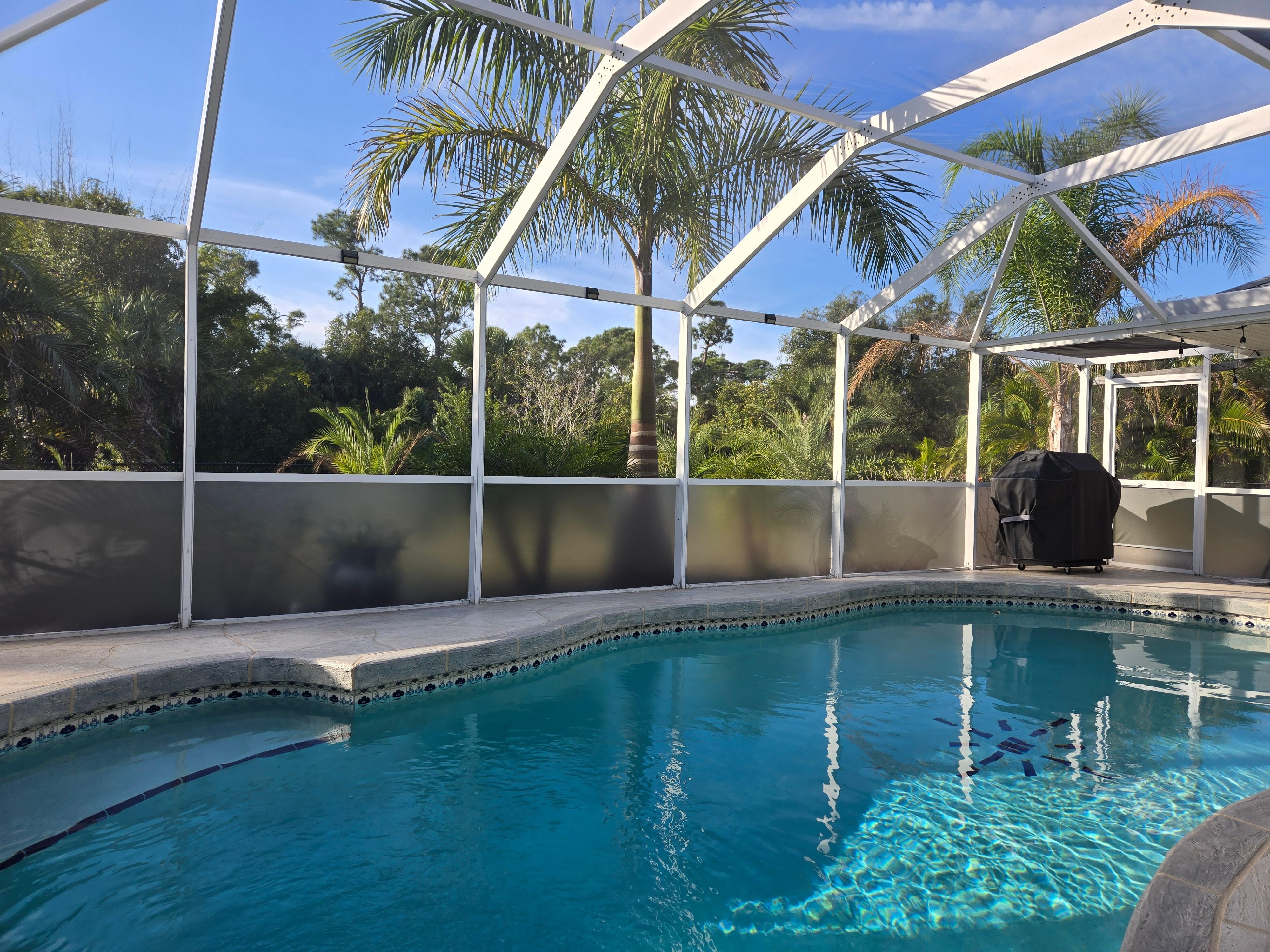 The house was close to the airport and that helped because our flight landed after midnight. The bedrooms gave everyone their own space. We ordered food from Walmart before we left our home and picked it up the next morning. Walmart is close and easy to find. We enjoyed the new gas grill and ate most of our meals in. Every cabinet and drawer in the kitchen was labeled to hep us find everything. The house was centrally locate and we took day trips to Sanibel/Captiva and Gasparilla Islands and each was about an hour from the house. The pool was so relaxing and we used it most days. There were pool floats for everyone to use. The owner thought of everything we needed to relax and enjoy our vacation!