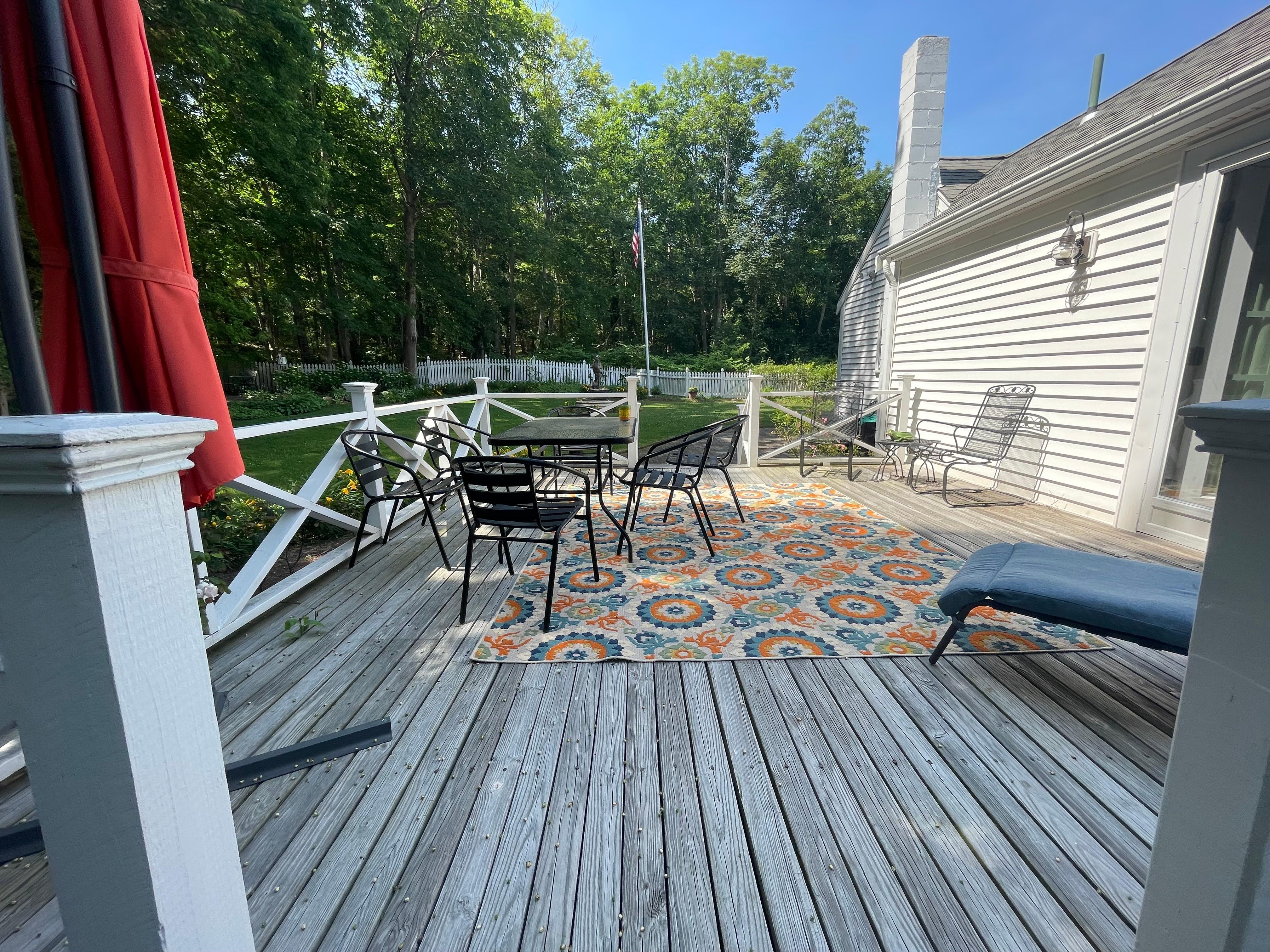 Outdoor enthusiasts will appreciate the grill and outdoor seating, perfect for summer barbecues, plus an outdoor shower. The property also features a three-season porch, ideal for enjoying the beautiful Cape Cod weather.