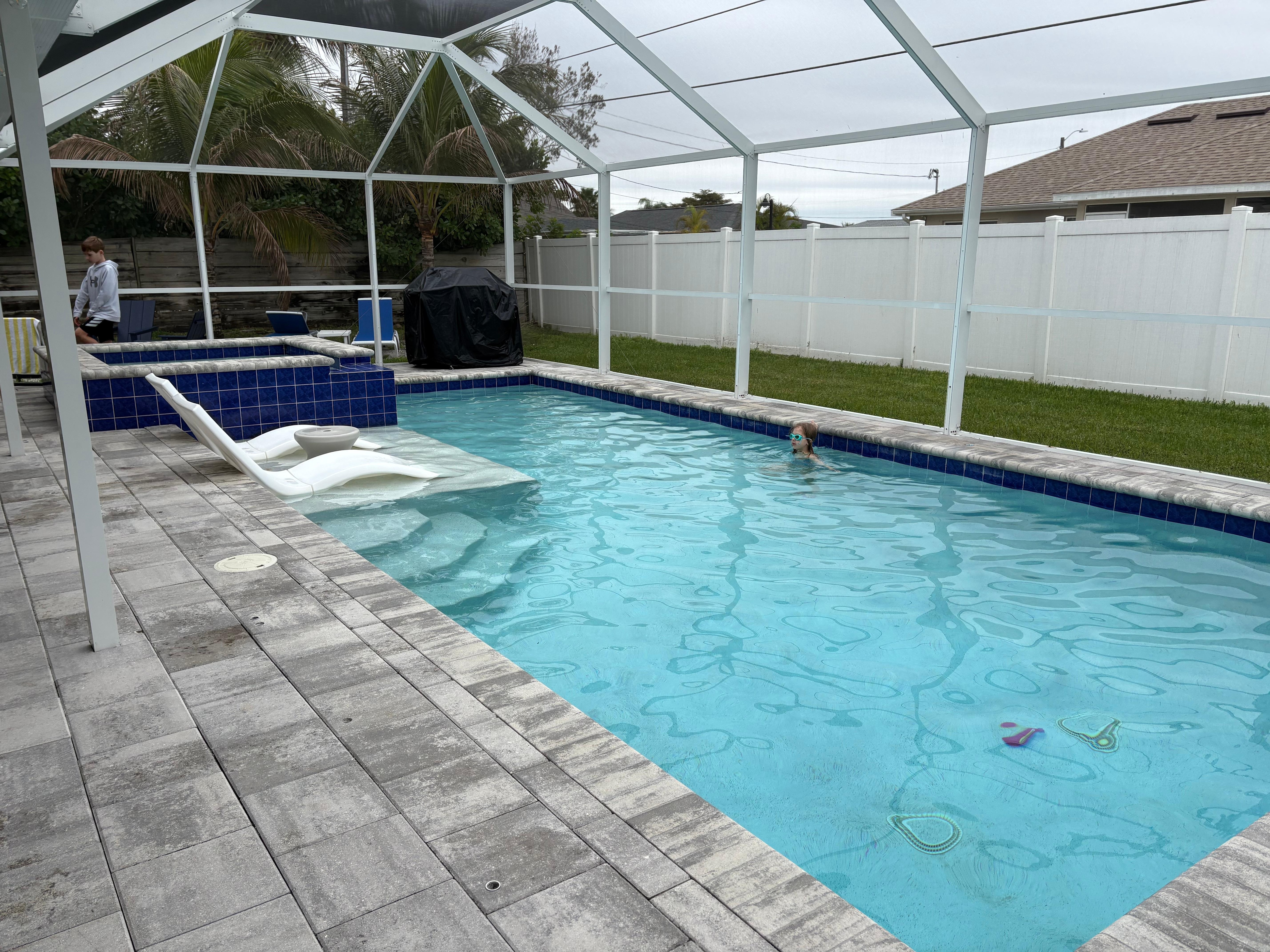 Pros - Very nice large heated pool and spa. Liked the location of the home. Near the middle bridge going into Cape Coral. Lots of grocery stores, restaurants, etc. nearby. Quiet, safe neighborhood. House had a Keurig and bath robes. Rooms were spacious. Cons - The tablet to operate the pool/spa had problems. Error messages kept popping up and you had to keep repeating what you wanted the pool/spa to do on the tablet before it would finally take. Recommend written instructions on how to use the tablet to operate the pool/spa. Overall the house was nice but there were several maintenance issues that need to be addressed such as refrigerator didn't make ice, light bulbs out or flickering, microwave door was cracked in three places, two outdoor lounge chairs were broken (mgmt company did replace them while we were there), floor was very dirty, shower curtain rod was coming out of the wall. The tv on the lania didn't have a cord long enough to plug in. Mgmt. company brought an extension cord but outdoor GFI outlet did not work so we had to run the extension cord through the patio door to an interior outlet. We had no a/c one night which couldn't be helped but we did spend five hours the next day waiting on the a/c repairmen. If the maintenance issues were addressed, we'd recommend this rental. Personally, there are too many other rental options and we would not return to this property. It's a shame because the pool and spa were excellent!