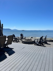 Beautiful beachfront home at Sandy Point Shores, close to Bellingham, WA and Vancouver, BC. Sandy Point Shores is a small beachfront community that boasts incredible sunrises over Mt. Baker and sunsets that could mirror those of the Hawaiian islands. With direct seasonaloceanfront access from the house, enjoy sounds and smells from the Puget Sound, passing ships, orca whales, blue heron and bald eagles flying overhead. Relax inside or outside on the large deck which overlooks Sucia, Matia, Patos and Orcas Islands.