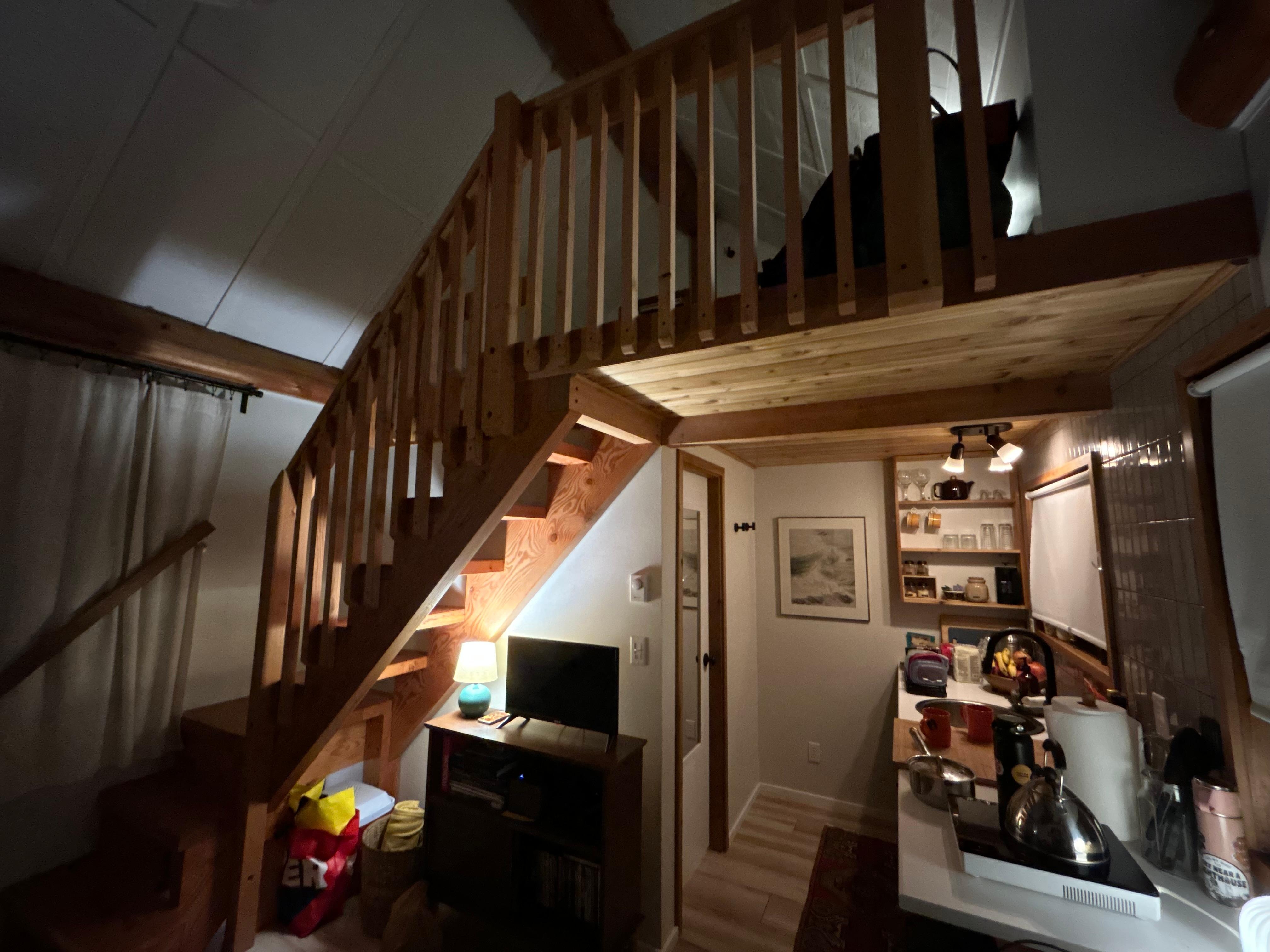 A newly updated, family built, post and beam log cabin set on a hillside in the trees. Bright, peaceful, brand new amenties, open living, beautifully crafted stair case, new private deck space with gas fire pit and a cozy sleeping loft overlooking the living area. Plenty of privacy and lush greenery out every window.
