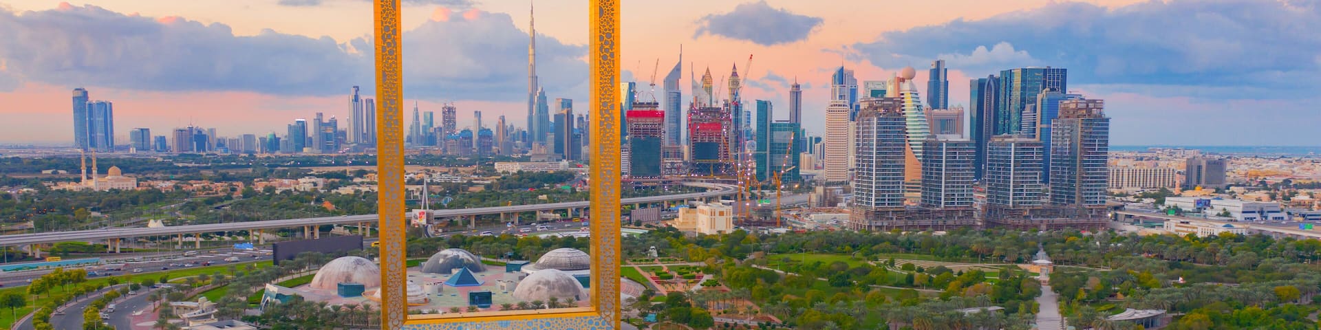 360 degree views of the Dubai skyline to include Burj Khalifa and Burj Al Arab